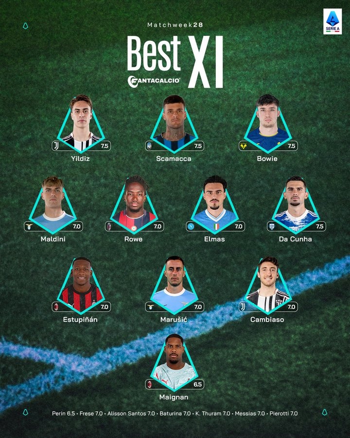 kaiyun-意甲第28轮最佳阵:迈尼昂、伊尔迪兹、斯卡马卡在列